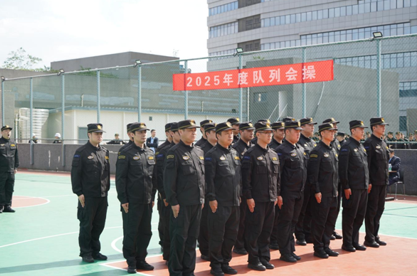 随着公司总经理张锋同志宣布“会操开始”,一场凝聚力量、彰显纪律的风采展示正式拉开序幕。“一、二、三、四!”口号震天,以中队为单位的队伍依次跑步入场,步伐整齐、目光坚定。在指挥员的口令下,队员们动作干净利落、呼应有力,报数声此起彼伏、气势昂扬。“向右看齐!”——迅速转头、小步调整,队列整齐如刀切。停止间转法动作规范、协调一致,展现出高度的默契与扎实的训练功底。无论是齐步走的整齐摆臂,还是正步时的威武气势,每一步都踏在同一节奏,一举一动都做到极致,严标准、高密度的培训成果在细微之处尽显无遗,得到呈现。最后,汇集各支队伍骨干组成的方队汇报表演更是将活动推向高潮,赢得现场阵阵掌声。